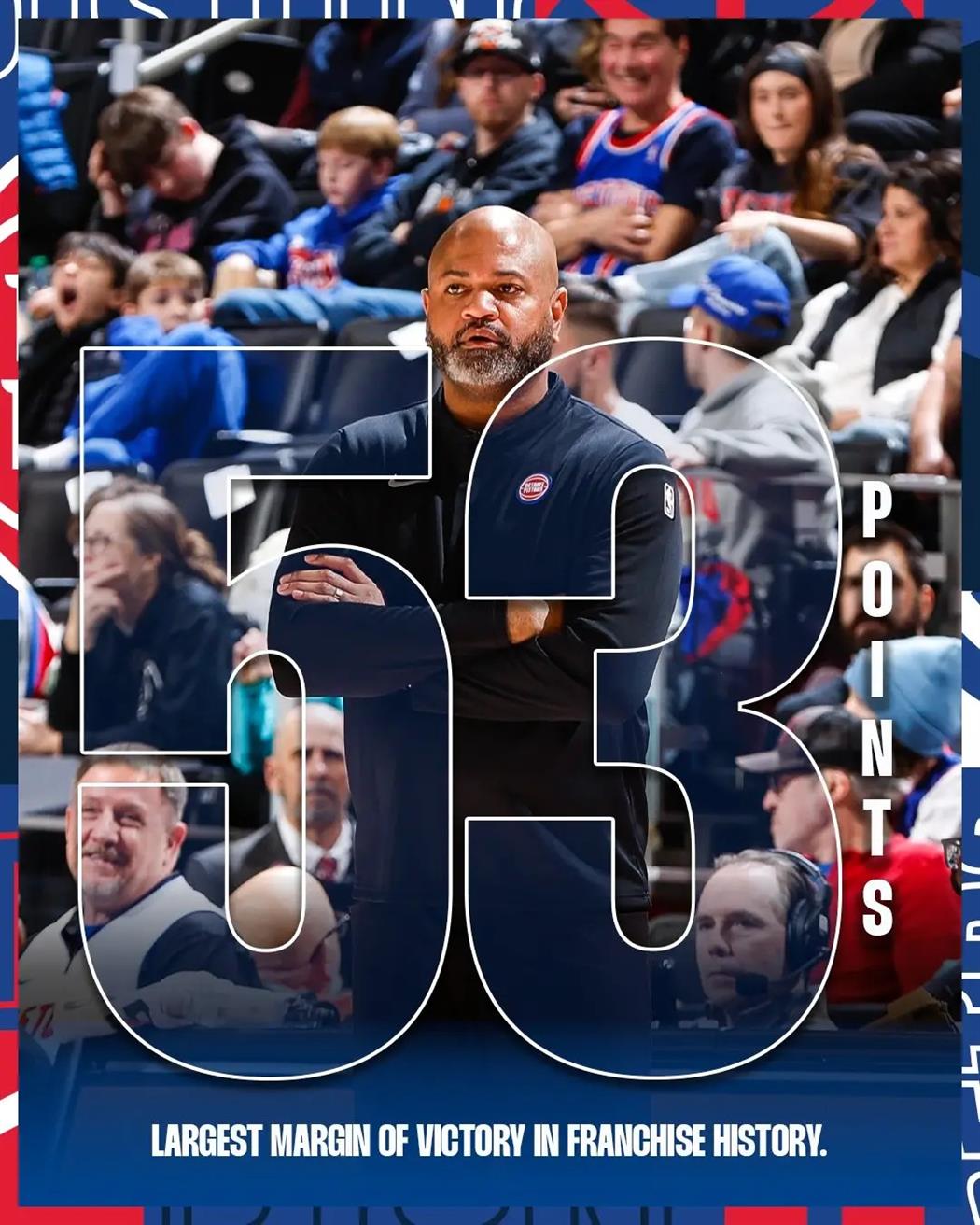 - 活塞主场130比77狂胜篮网53分 创NBA历史单场最大分差