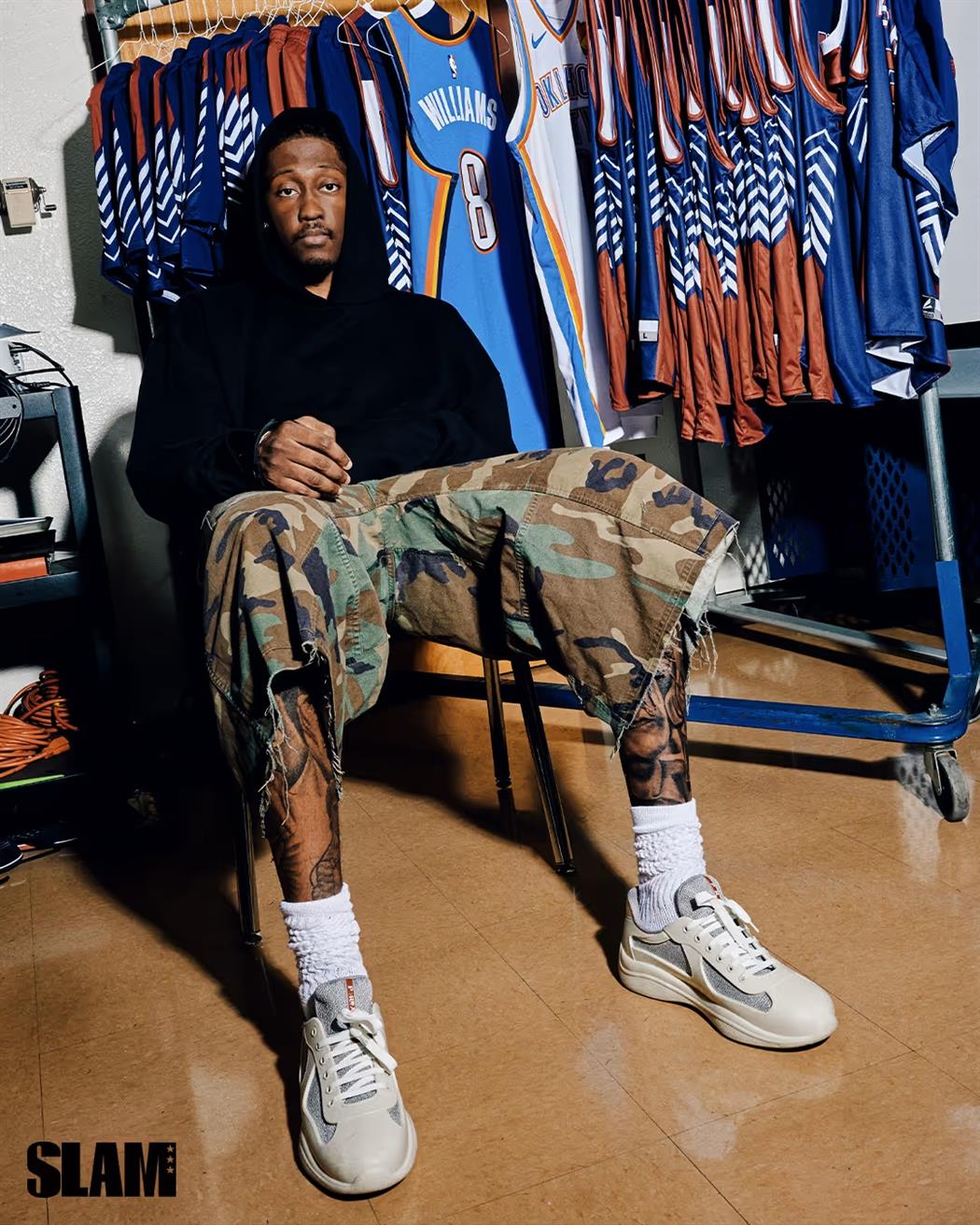 登上扣篮杂志的杰伦·威廉姆斯.这位帮助俄克拉荷马城登顶联盟的24岁全明星,在天赋横溢的青年军中闯出一片天地,数月前刚站上冠军领奖台的年轻人,如今回到了传奇开始的地方。而扣篮杂志也选择在此地进行他生涯首次独立封面的《SLAM》杂志拍摄,这是再合适不过的安排。
