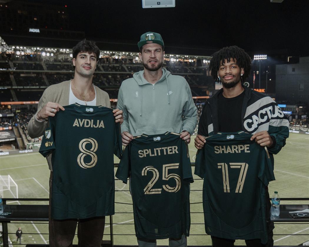 我们不仅是NBA球员,更是篮球爱好者。普罗维登斯公园足球之夜,开拓者的球员集体出动,现场支持波特兰木材队的比赛。