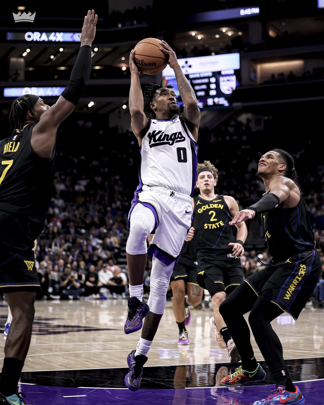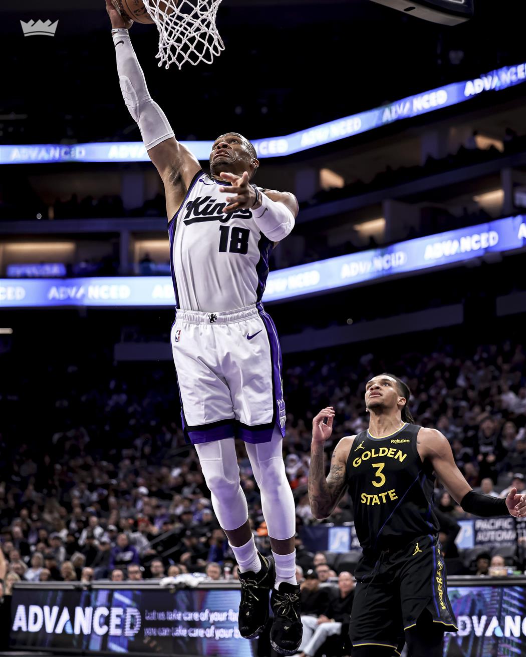 国王在对阵金州勇士的比赛中频频用突破上篮撕破对方防线!