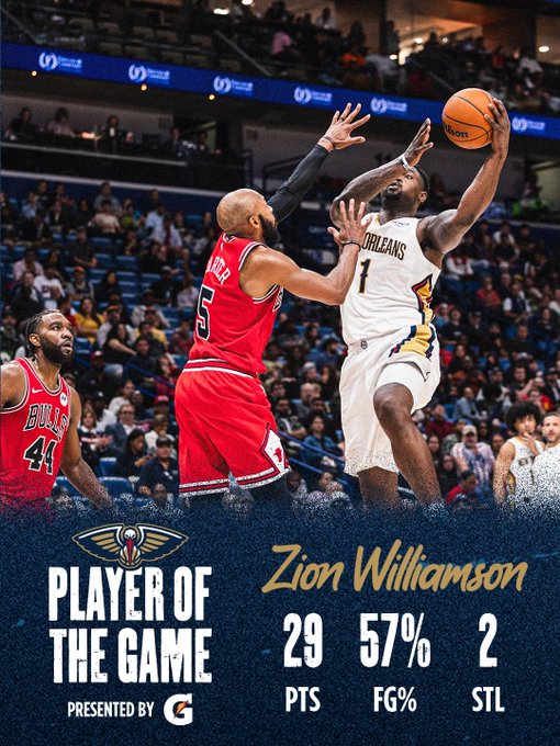 #NBA快讯# 北京时间11月25日,鹈鹕主场143比130战胜公牛。锡安.威廉姆森狂砍29分,带领球队轻松取胜,本场最佳,当之无愧!