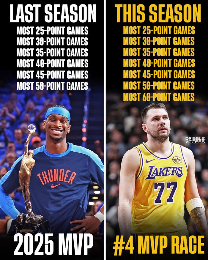 本赛季:卢卡在所有统计类别中都领先,包括60分以上的比赛场次,但在MVP评选中仅排名第四!