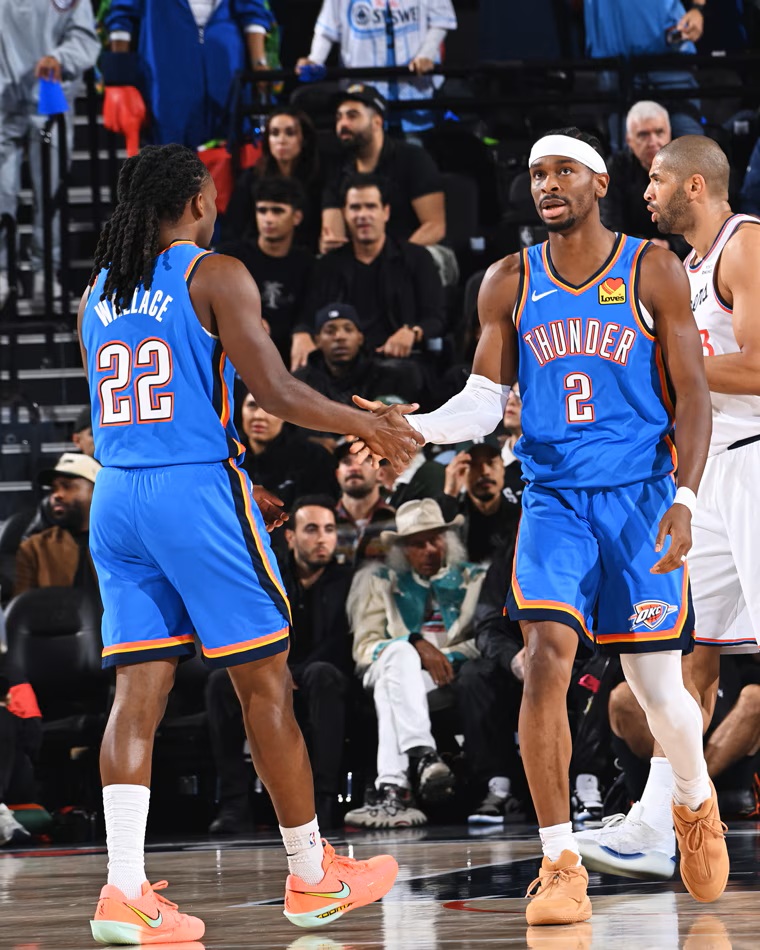俄克拉荷马雷霆队势不可挡。在客场以126-107大胜洛杉矶快船后,他们以开季八连胜的骄人战绩继续领跑联盟。谢伊·吉尔杰斯-亚历山大自新赛季伊始便展现出MVP级别的统治力,在今天的比赛中更是砍下30分4篮板12助攻的全面数据,率领球队豪取八连胜——这也创下了雷霆队史最佳开季纪录。