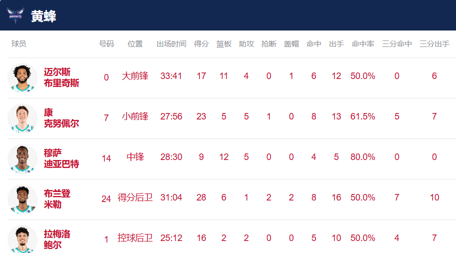 两队先发五虎的表现如下: