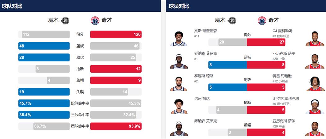 - 奇才爆冷120比112击败魔术 终结了对对手的11连败