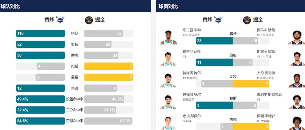 - 掘金多名核心缺阵 黄蜂爆冷110比87大胜对手