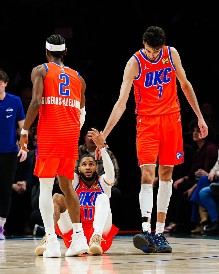 雷霆在本赛季至今的整体表现,仍然维持前一个夺冠赛季的面貌:团队攻防效率都在联盟前五,其中防守效率是联盟最佳、对手失误转换得分最多,同时自身失误率最低、控制节奏也维持水准,甚至开季时命中率低到可笑的三分球,也慢慢修正回联盟第15名。因此即使近况令球迷担心,但是别忘记上赛季雷霆做得很好的环节,这赛季几乎完全相同的阵容再战,依然延续了下来,而且还领先全联盟的战绩,是在阵容不完整度高居联盟前三的情况下打出来的。
