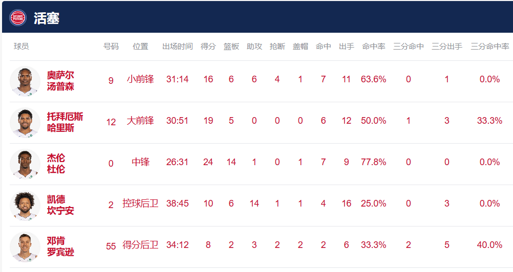 比赛从一开始就陷入拉锯战,双方比分交替上升,分差始终未能拉开。活塞内线新星杜伦发挥出色,全场砍下24分14篮板的两双数据,哈里斯贡献19分5篮板,核心坎宁安则送出10分6篮板14助攻的全面表现,串联起全队进攻。骑士方面,泰森轰下全队最高的22分,外加3篮板4助攻;哈登贡献18分6篮板7助攻,并在关键时刻多次突破得手;莫布利也有18分5篮板4助攻入账。三节战罢,骑士仅以微弱优势领先。末节决战,活塞一度反超比分,但骑士凭借更稳健的进攻和防守重新掌控局势,最终以4分优势拿下胜利。