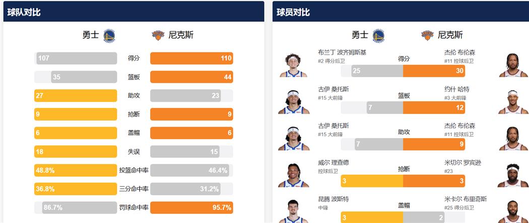 - 残阵勇士客场107比110惜败尼克斯