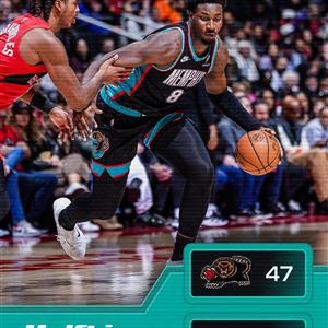 - 灰熊与猛龙的比赛半场结束,猛龙53比47暂时领先灰熊!
