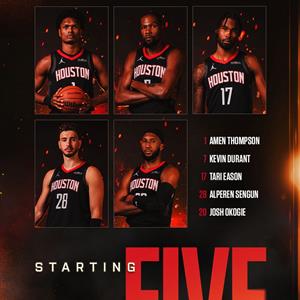 - 火箭和独行侠的比赛马上要开始了,先发五虎已安排上!