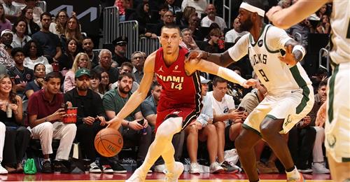 - 打球吗NBA中文网讯 北京时间11月27日,NBA杯小组赛东部C组上演一场焦点对决,迈阿密热火坐镇主场以106-103险胜密尔沃基雄鹿,豪取六连胜的同时